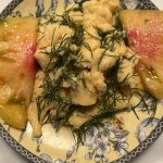 On my first two attempts at scrambling Crack’d, I used the same approach I’ve always used for scrambling eggs – I like ‘em soft, so that’s how I decided when to pull the substitute out of the pan. The first time, I was nervous. Added some green chilies to it in case I wasn’t 100% on the taste/texture. It tasted ok, but I wasn’t crazy about the kind-of-gooey mouthfeel. Next attempt I tried seasoning with fresh dill and eating with late-summer tomato slices. Again, ok, but the mouthfeel still felt wrong.